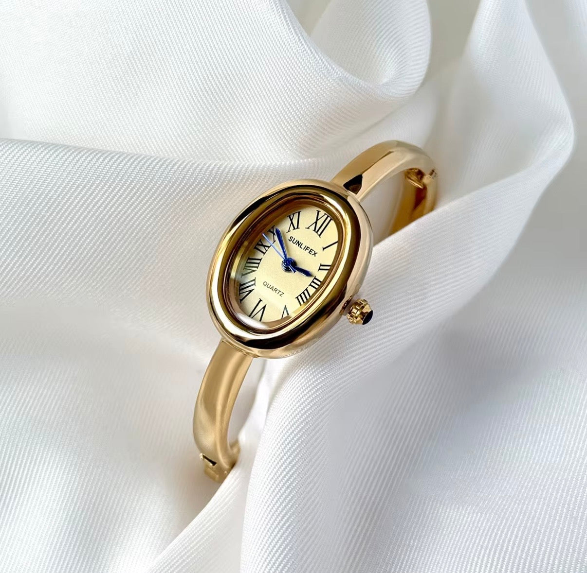 The 24 mm dial offers a sleek, compact silhouette, while the polished 19 cm band maintains a balanced, contemporary look. Driven by a dependable quartz movement, it ensures precise timekeeping. The folding clasp with a safety lock enhances security, and 3BAR water resistance protects against daily splashes.